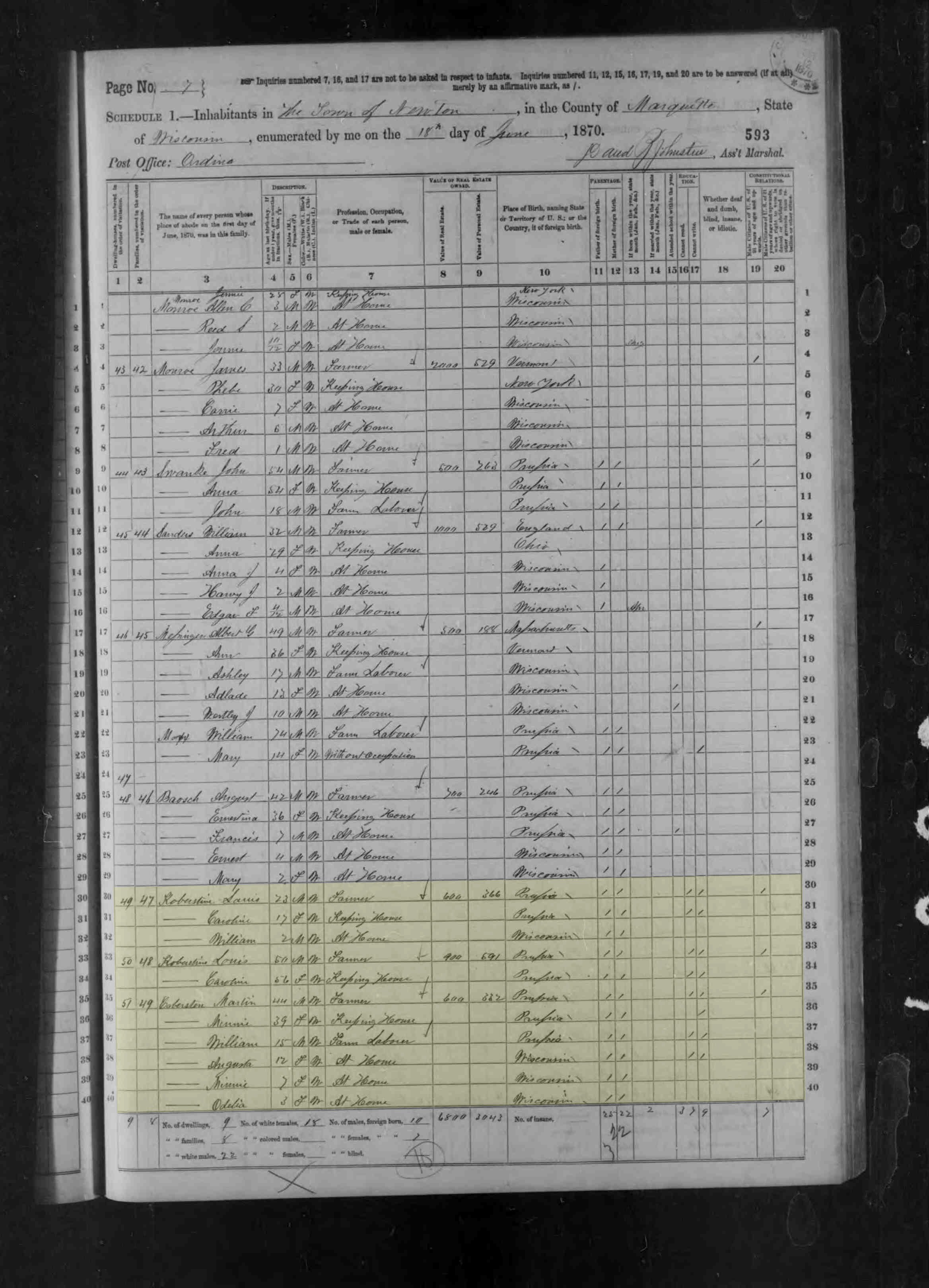 11870 US Census Wisconsin, Ancestry.com. "Martin Koberstein Family." Image.