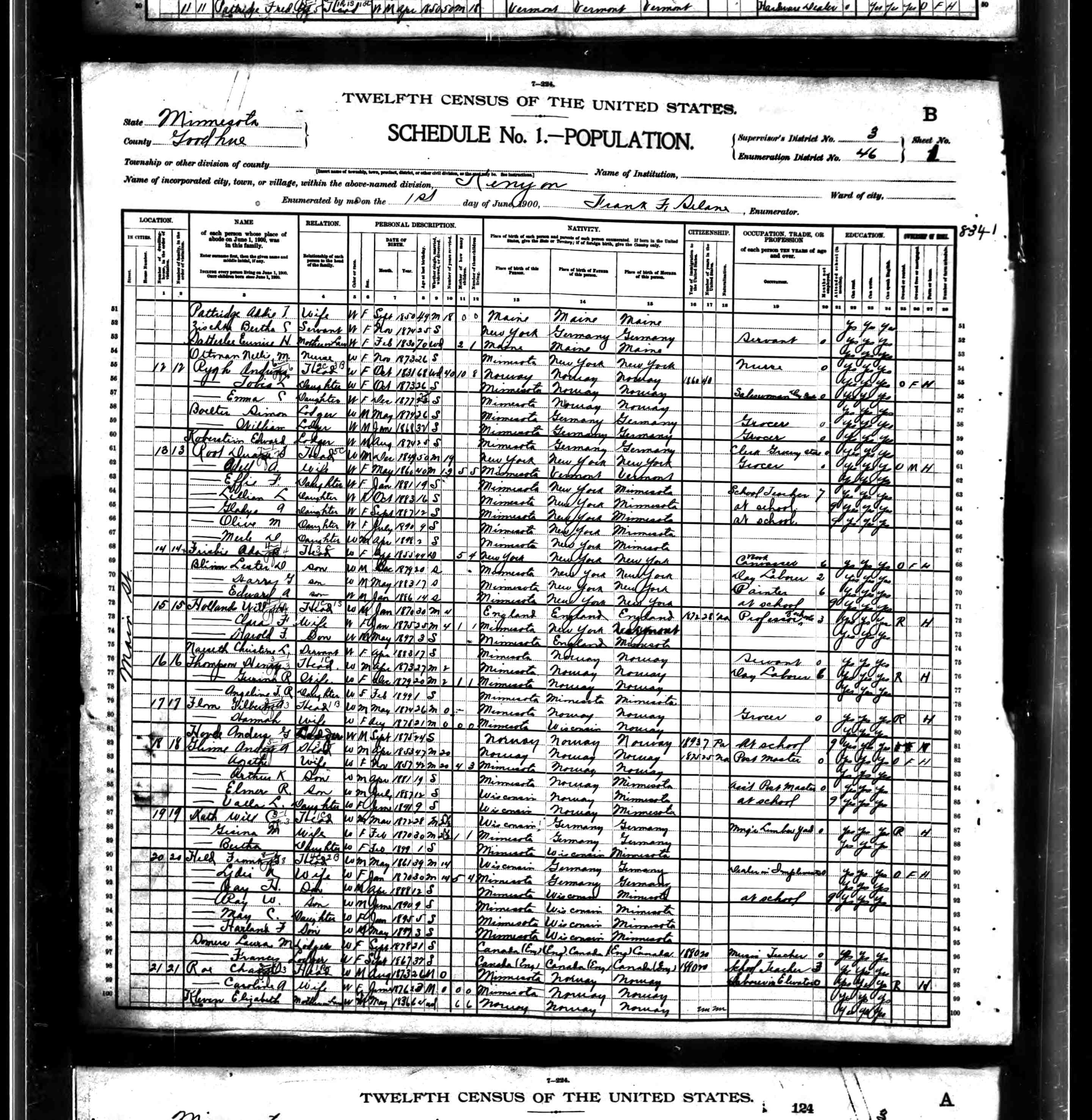 11920 US Cencus, Minnesota, 17 Jan 2000, http://www.ancestry.com/.
