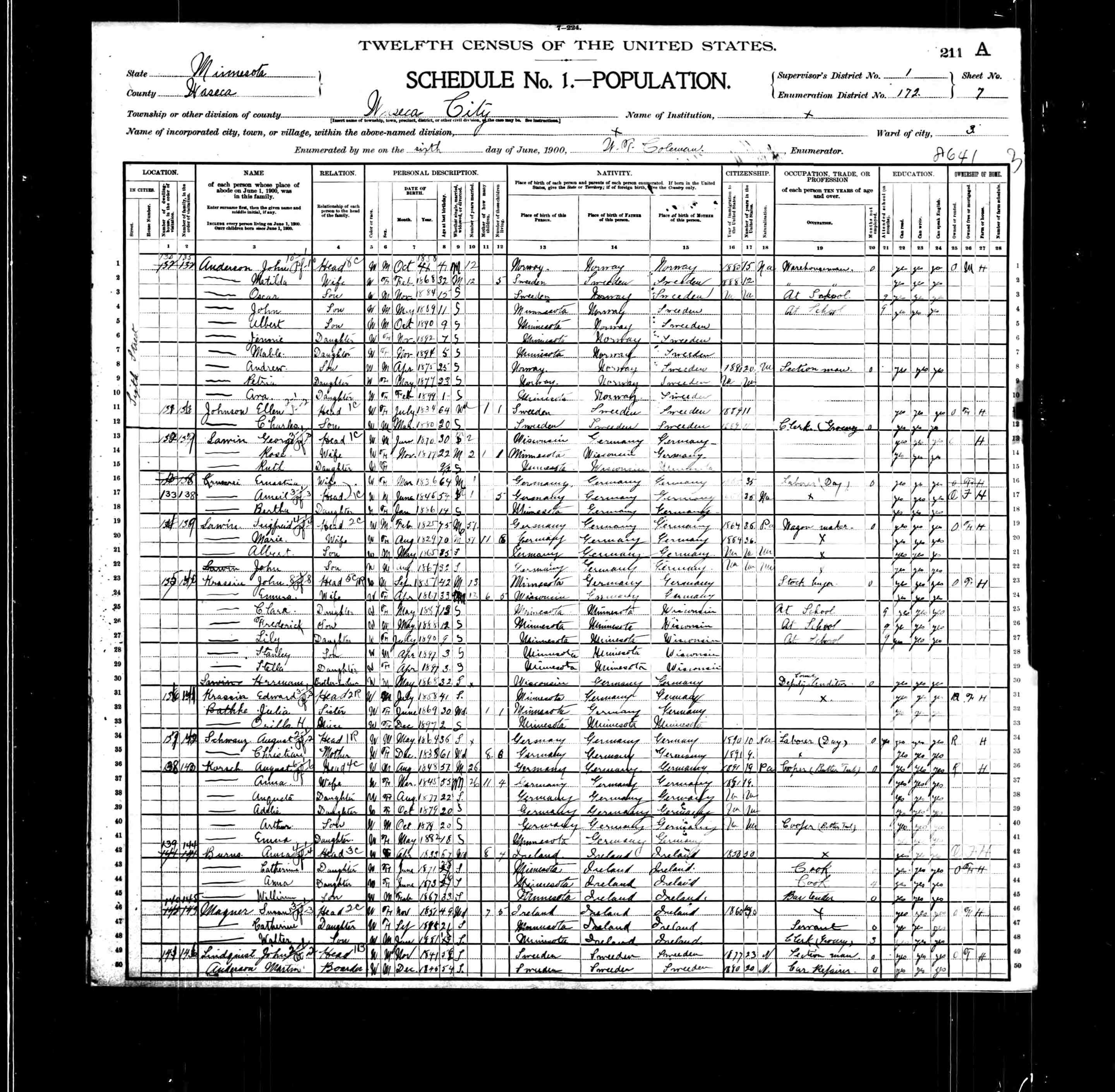11900 US Census, Minnesota, Ancestry.com. "1900 US Federal Census