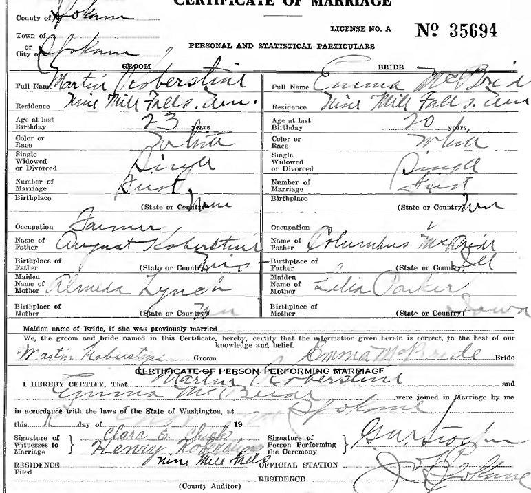Certificate: 009154."3West Greenwood Cemetery Spokane county Washington, Rootsweb.com, Ancestry.com. "West Greenwood Cemetery Spokane county Washington Cemetery Markers." Researched May 3, 2001.