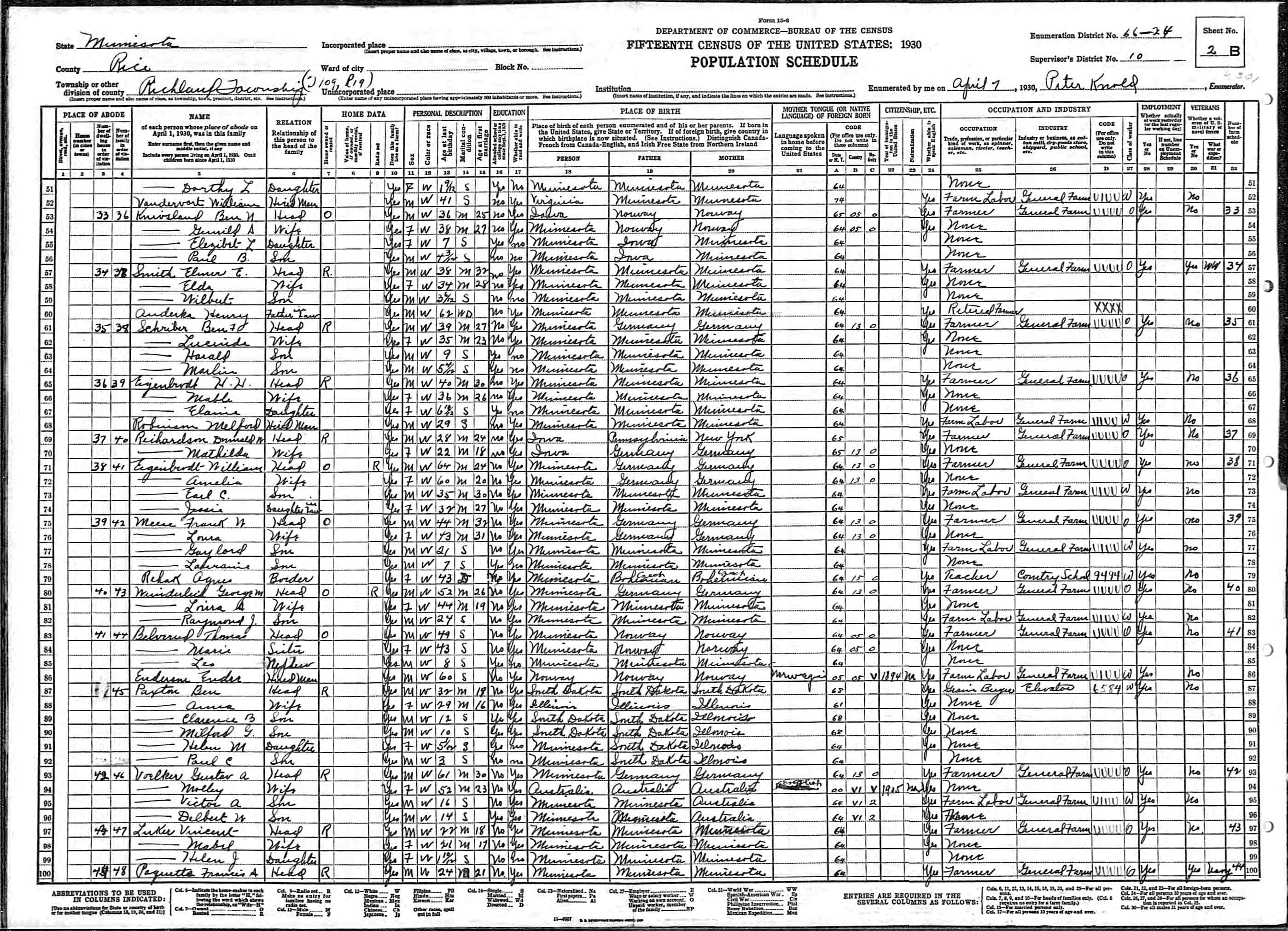 11930 US Census, MN, Ancestry.com. "1930 US Federal Census Minnesota, Rice, Richland, District 24
