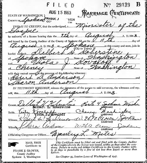 1Marriage Certificate, Terry L. Koberstein Possession, 817 Gloucester Street, Antioch, CA 94509. "Delbert Koberstein