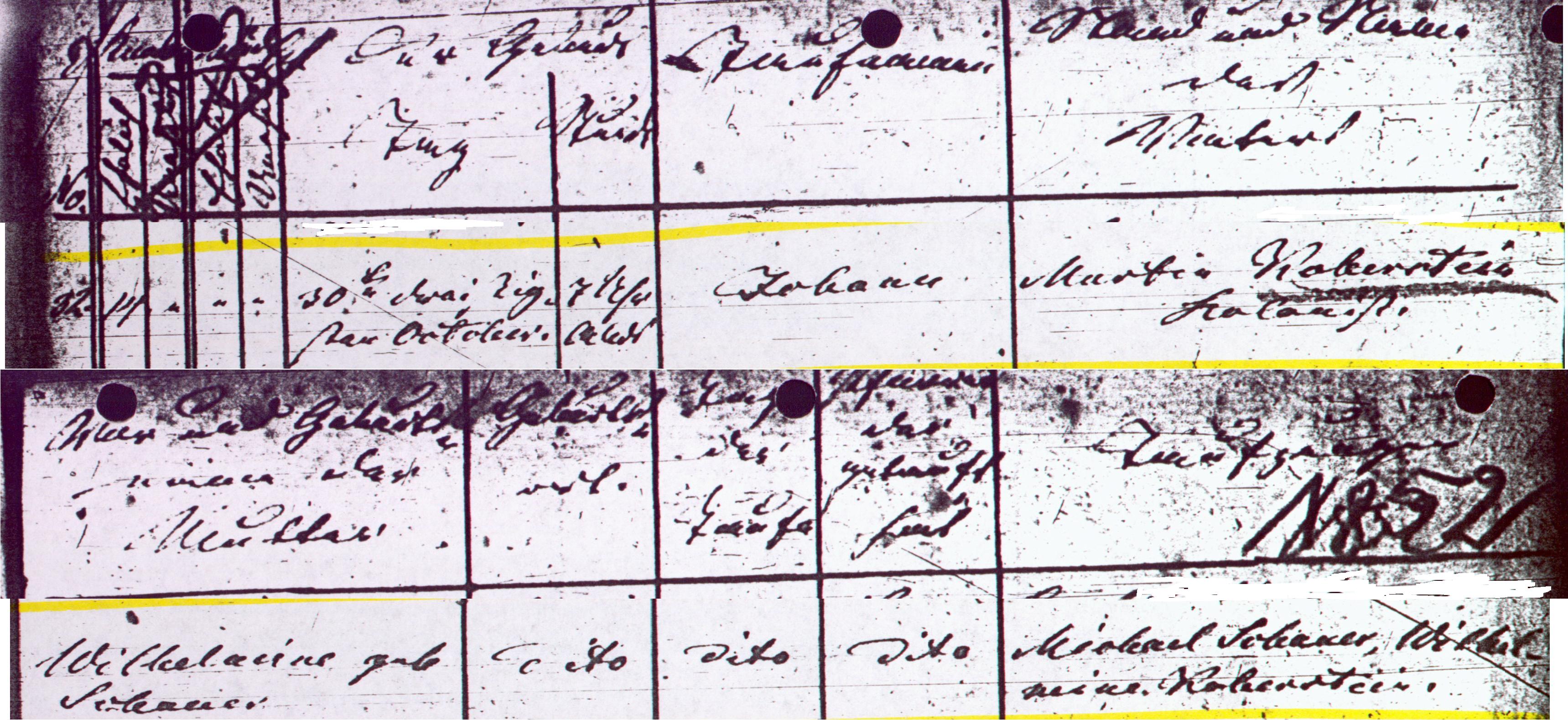 Michael KOBERSTEIN was born on 1 Nov 1850 1 in Colonie Brinsk, Strasburg, West Prussia 1. He was christened in 1850 2 in Langendorf, Strasburg, West Prussia 2. He died on 10 Mar 1851 3 in Colonie Brinsk, Strasburg, West Prussia 3. He was buried on 12 Mar 1851 4 in Colonie Brinsk, Strasburg, West Prussia 4.[Notes] + 20 M v Johann Gottlieb KOBERSTEIN was born on 1 Jun 1852. He died on 25 Nov 1908. 21 F vi