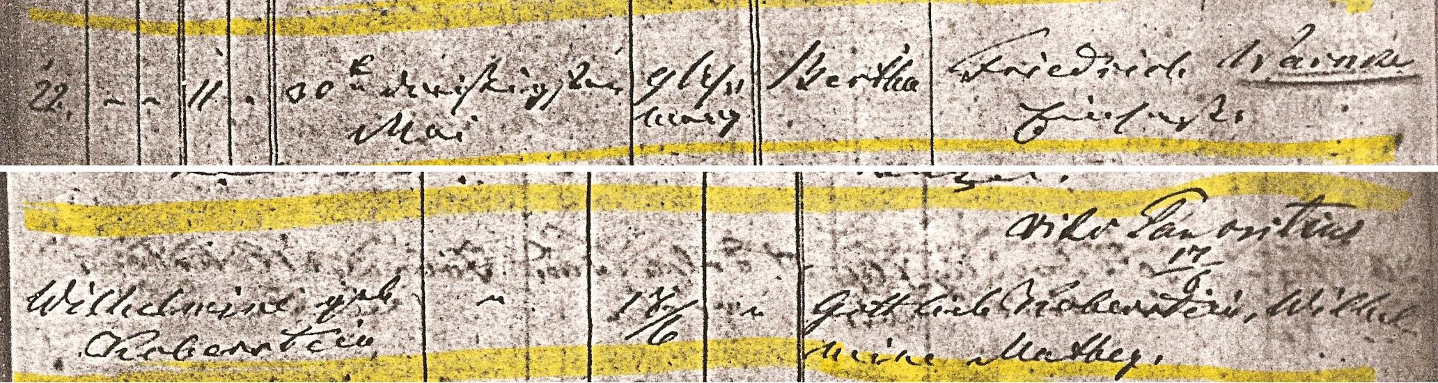 Wilhelmine KOBERSTEIN was born on 4 Oct 1838 1 in Colonie Brinsk, Strasburg, West Prussia 1. She was christened on 14 Oct 1838.[Notes] 11 M iii
