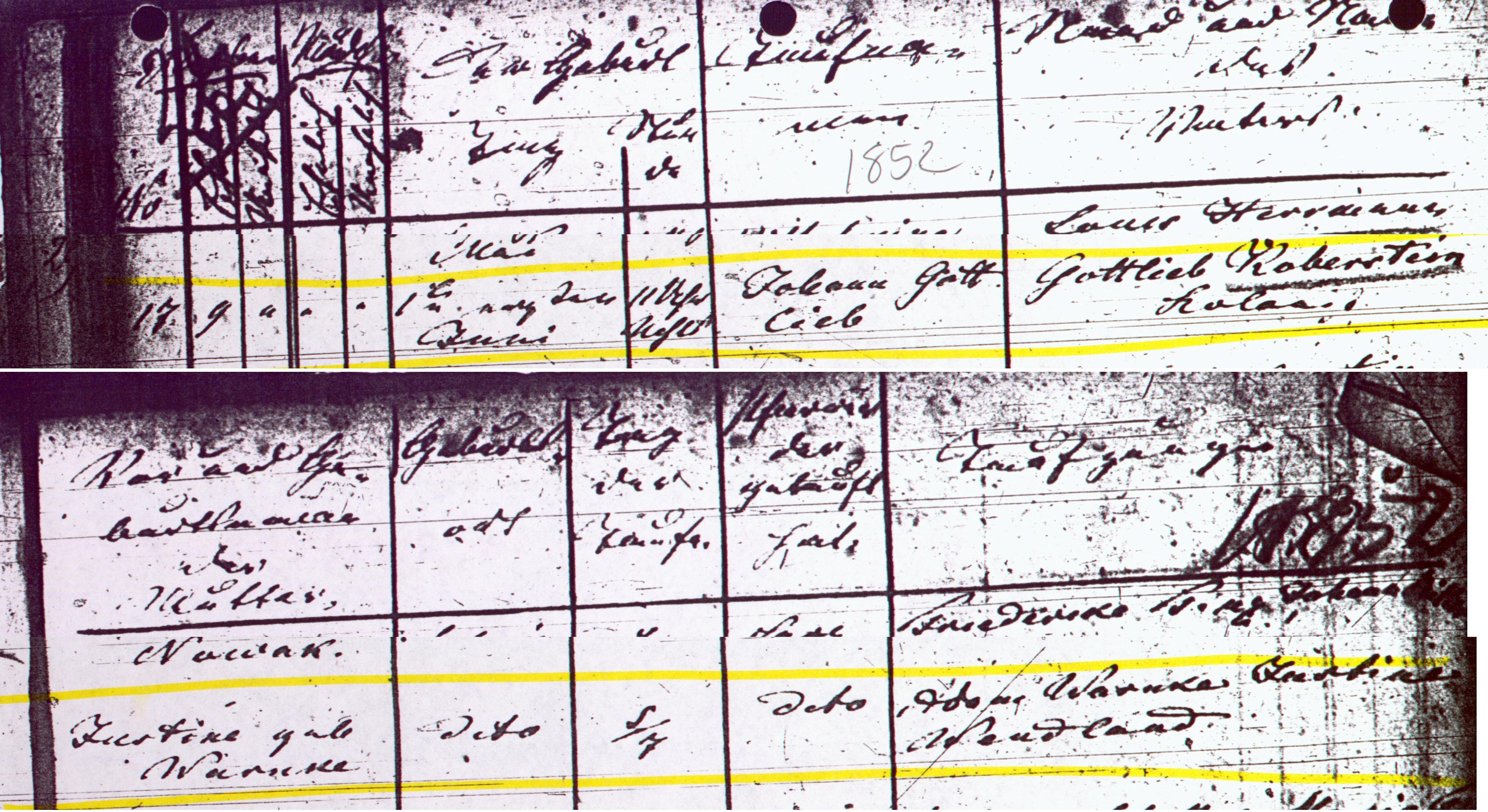 17. Caroline KOBERSTEIN (Gottlieb , Christoph ) was born on 12 Mar 1846 1 in Colonie Brinsk, Strasburg, Prussia, West Prussia, Germany 1. She was christened on 29 Mar 1846 2 in Langendorf, Strasburg, Prussia, West Prussia, Germany 2. She died on 22 Jan 1892 3 in Colonie Adlig Brinsk, Strasburg, Prussia, West Prussia, Germany 3. [Notes] |