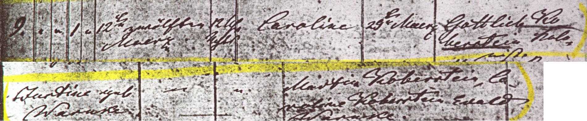 38. Caroline KOBERSTEIN (Johann Friedrick Gottfried , Christoph ) was born on 18 Aug 1850 1 in Colonie Brinsk, Strasburg, West Prussia 1. She was christened on 4 Sep 1850 2 in , Strasburg, West Prussia 2. [Notes] |