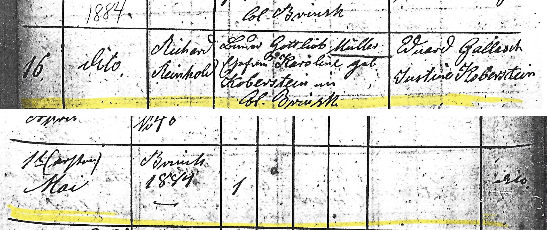 Richard Reinhold MÜLLER was born on 4 May 1884 1 in Colonie Brinsk, Strasburg, Prussia, West Prussia, Germany 1. He died on 14 Jul 1884 in Colonie Brinsk, Strasburg, Prussia, West Prussia, Germany.[Notes] 82 F iv