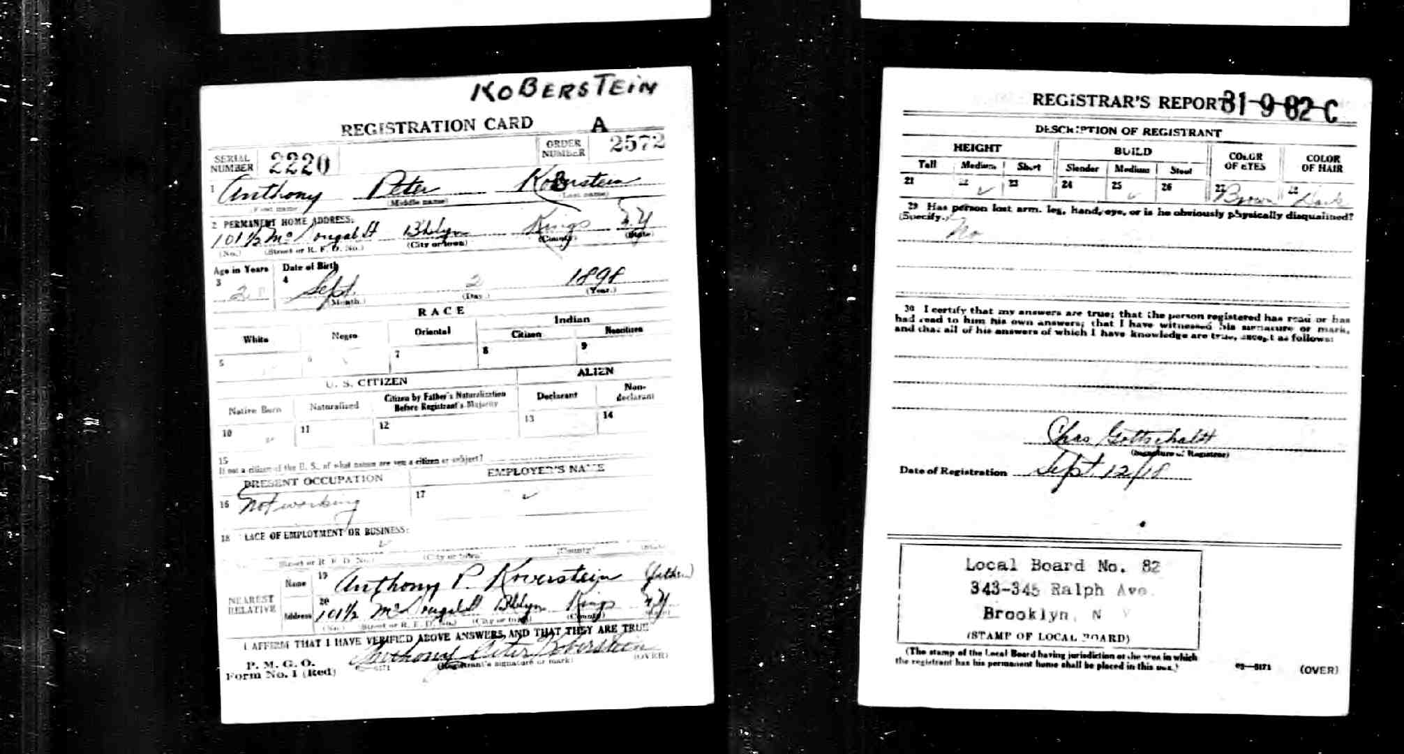 20. Anthony P. KOBERSTEIN "Anton" (Andrew , John , ) was born about 1869 in New York, New York.