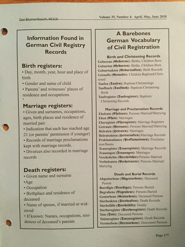 * geboren born (*) aussereheliche Geburt born illegitimate ~ getauft baptized ~~ getauft baptized o verlobt engaged oo verheiratet married I oo 1e verheiratet 1st marriage II oo 2e verheiratet 2nd marriage + gestorben died +us mortuus died +g mortuus died +* Totgeburt stillborn o/o geschieden divorced o|o geschieden divorced o-o freie Verbindung illegimate or common law union X gefallen killed in war +X an im Kampf erlittenen Wunden gestorben died of wounds in war [] begraben buried ++ diese Linie ausgestorben this line extinct !! Pfarrer Reverend /### Kind von ### child of parent ### |